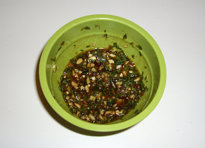 Cook brown rice vermicelli as per package instructions, usually for a minute in boiling water. Rinse, drain well, let cool completely, toss in a bit of rice wine vinegar and refrigerate for now.