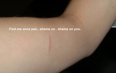 WRONG! As the saying goes, Fool me once, shame on you, pan. Fool me twice, shame on me.. in the shape of a burnt almond ouchie.