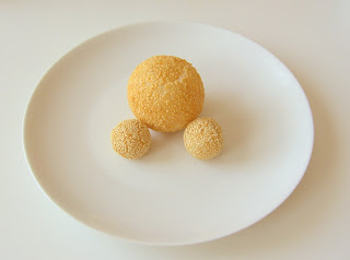 I prepped for days, reading about the perfect method not to ruin a popover recipe, apparently there's a real precise science to it.I'd never eaten popovers myself and didn't know what to expect, but if a food link is sent from a reliable source, it must be tried. I was determined to conquer those lil alien cheesy bread puffs. I even dreamed about successfully battling it out with the Gruyere pops before having a go at them. "You really do only think about food don't you?" Evidently. Later at the Asian grocers I bumped into sesame balls, which I hadn't personally seen since Dim Sum Go Go in NYC, yet another reason to miss my favorite destination city.