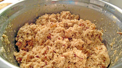 1 cup toasted almonds, chopped (don't know how? raw alonds can be toasted at 350ish for about 8-10 minutes on a cookie sheet. They're ready when they have browned and smell delicious. Remove from oven, let cool.)