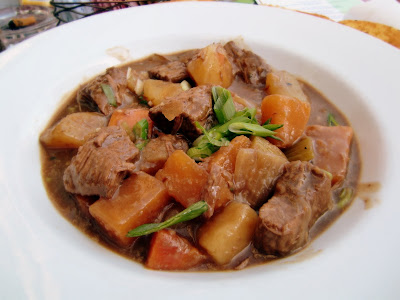 So why serve this good beefy version in a shallow unheated dish that fails to retain the heat? It may be more visually pleasing, but it's not doing it's job if it's not warming me up. No knocks on the recipe (thought it required s&p.)
